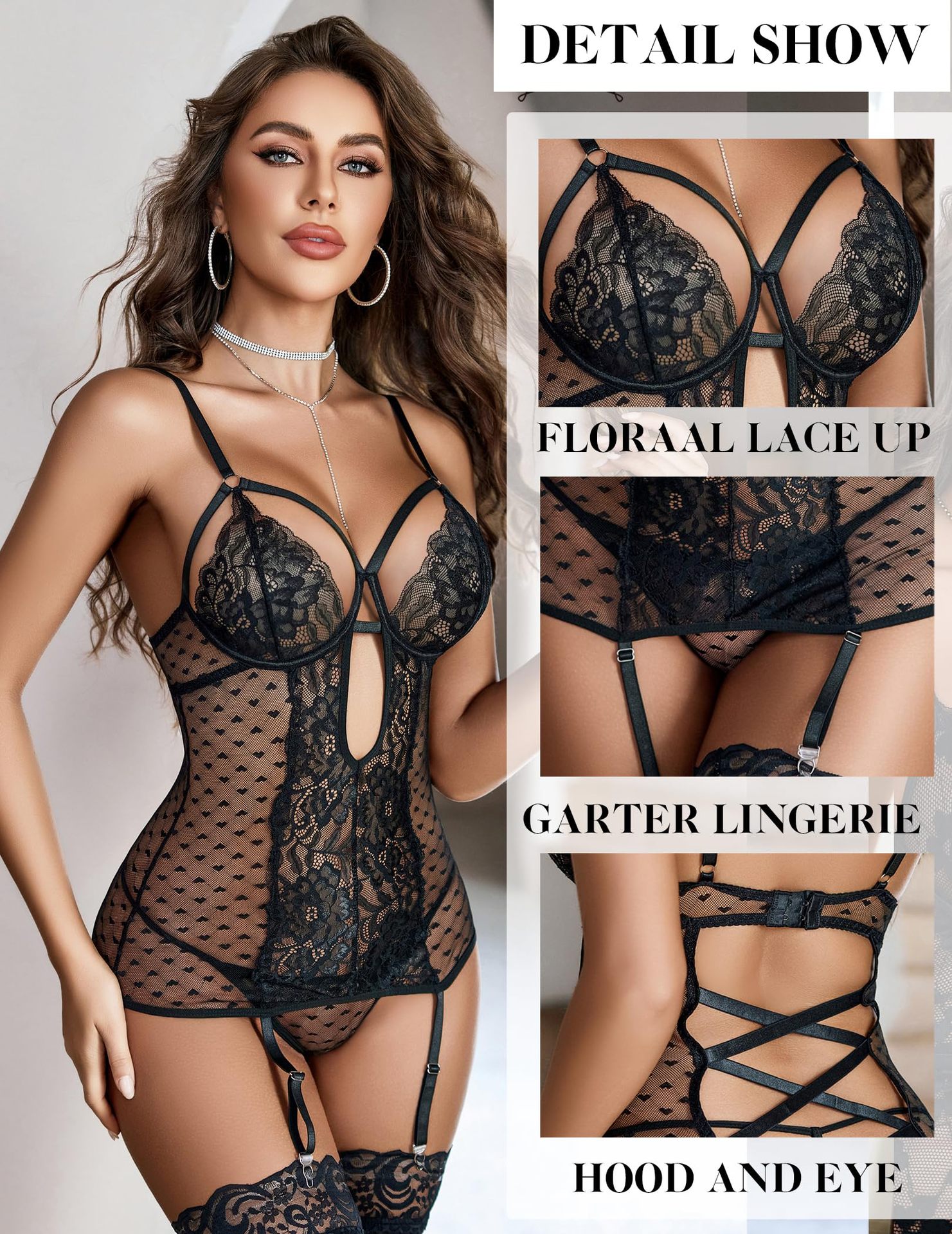 Cross-border Foreign Trade Ultra-thin Lace Transparent Erotic Suspender Dress Backless Binding Temptation Sexy Thong Set